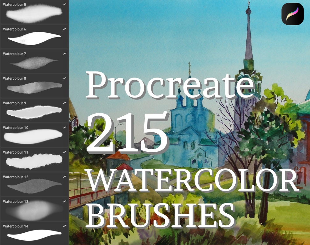 215 Watercolor brushes, Procreate brushes, iPad brushes, Watercolor brushset, Digital brushes, Brush for Procreate, Watercolour stamps